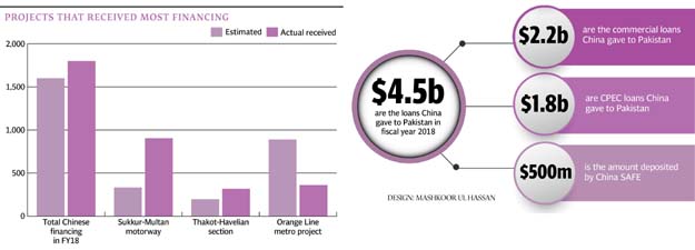 In the last fiscal year, China gave $4.5 billion in loans to Pakistan. These included $2.2 billion in commercial loans, $1.8 billion under CPEC and $500 million in deposit from State Administration of Foreign Exchange (SAFE).