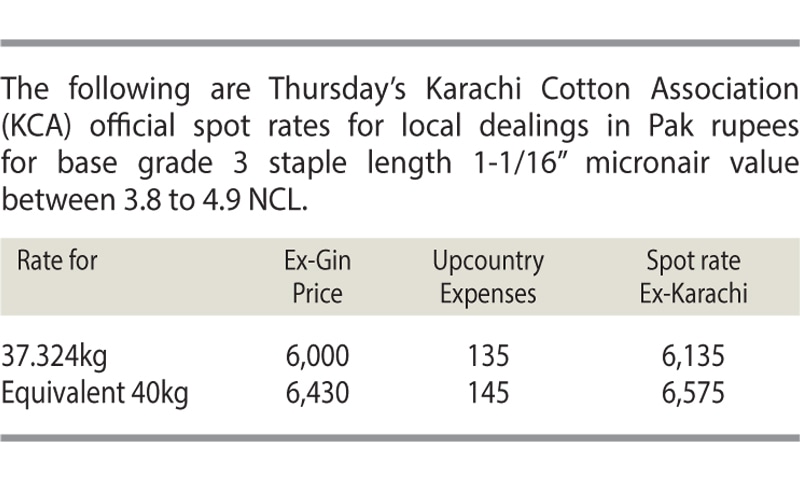 Naseem Usman, chairman of the Karachi Cotton Brokers Association, told Dawn the Pakistan Cotton Ginners Association, cotton growers and All Pakistan Textile Mills Association have urged the KCA to either change its price fixing formula or at least relate the spot rates with high-grade cotton, which is mostly available at the start of a season, rather than fixing it at lower-grade cotton rates.