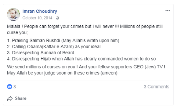 It is very sad that our own community trivialises the accomplishments of a brave, confident, smart young girl who was shot in our country by the Taliban only because she wanted to study. It is high time we change this stereotypical mindset and become a bit civilised.